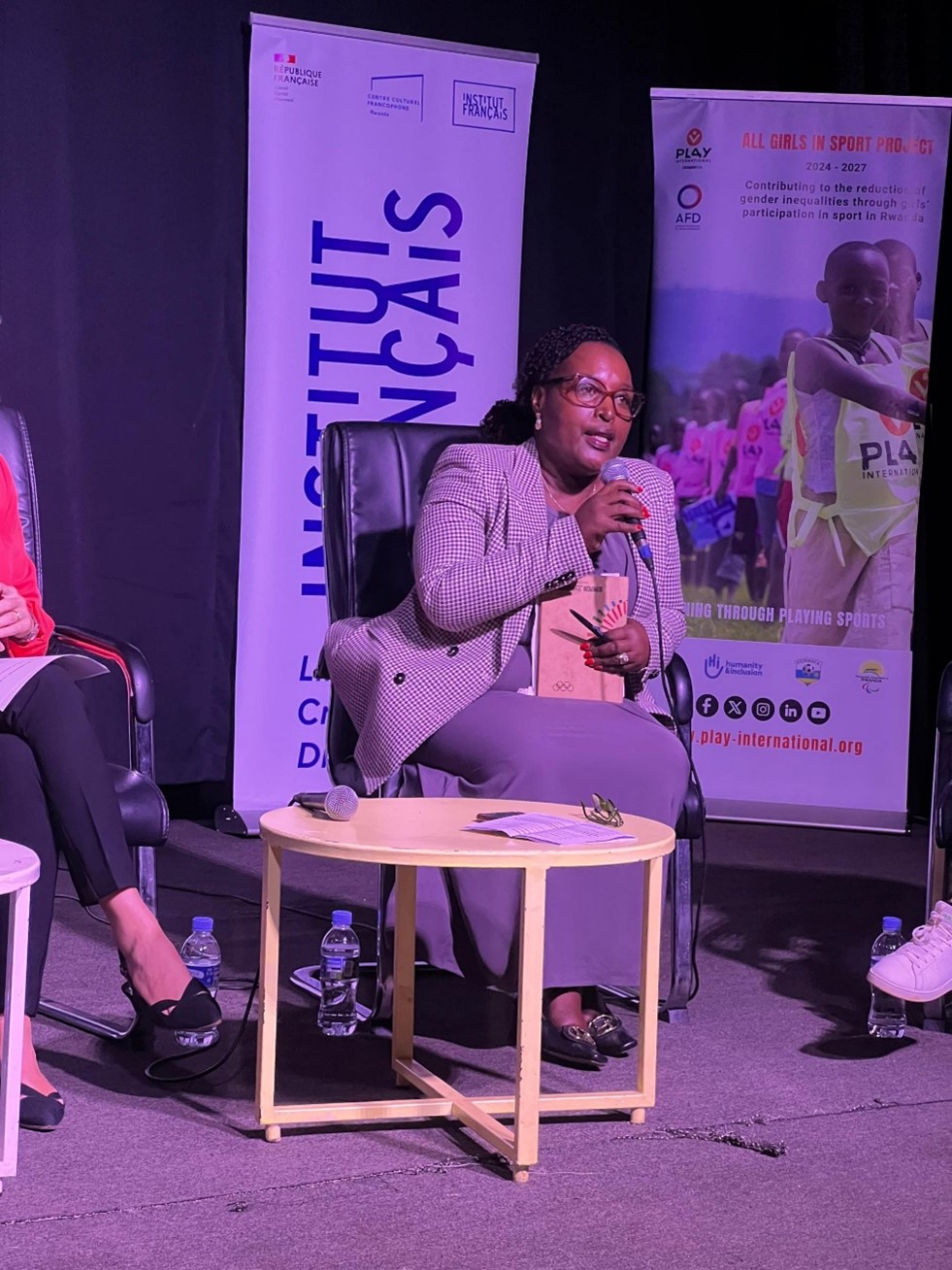 The exhibition opening included a panel discussion moderated by Pascaline Curtet, Country Representative of PLAY International Rwanda.