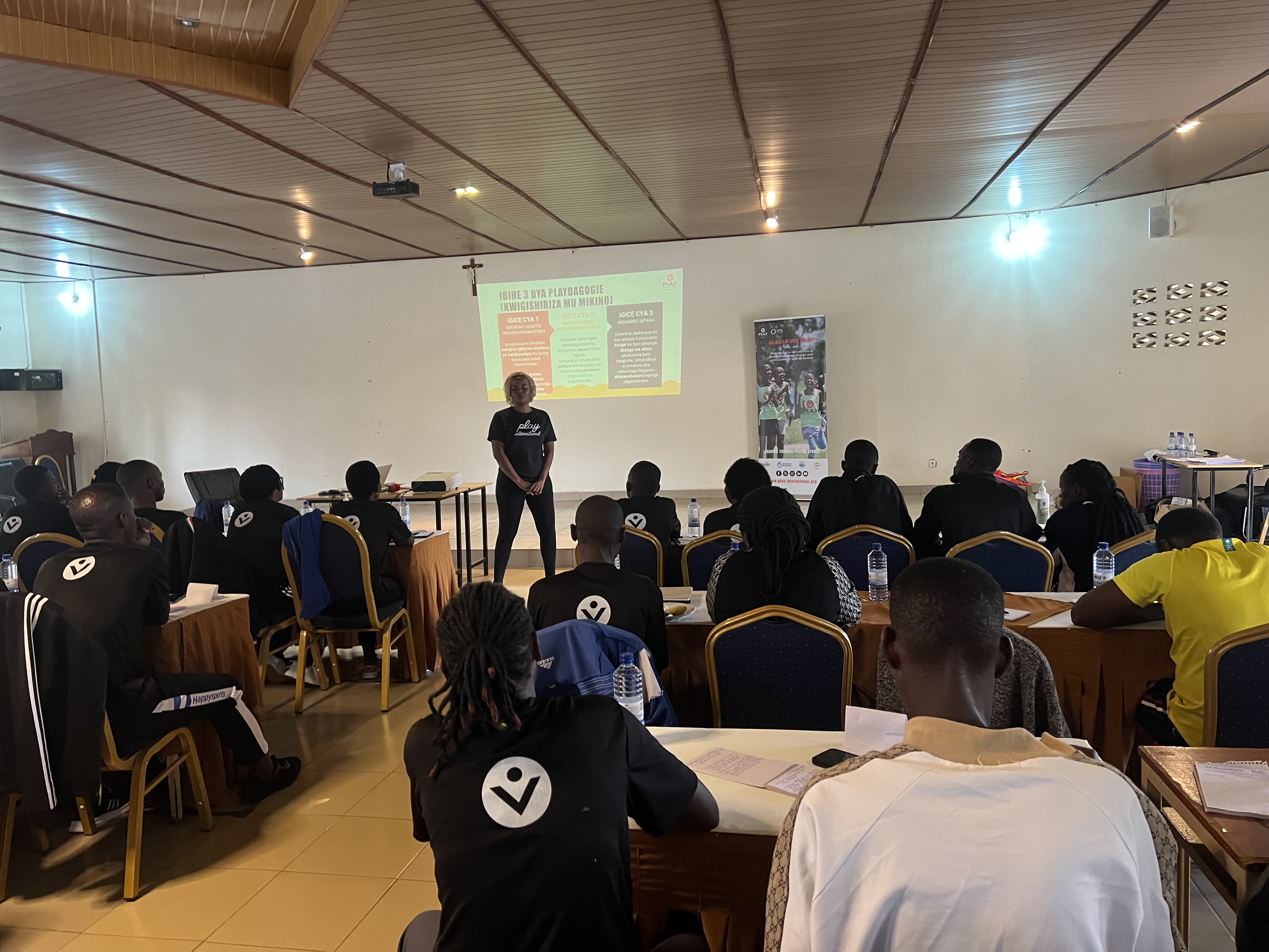 To roll out this kit and make it a reality, 44 coaches, half of whom are women, were trained over a three-day period. These coaches come from 22 sports clubs that are partners of Play International and are based in the Eastern Province and Kigali City made of Gasabo, Rwamagana and Kirehe. The kit uses an educational method that combines structured games and guided discussions (debates), a method known as ‘Playdagogy’. This method is new to Rwanda, as the Play International office there only opened last year. By combining play and pedagogy, Playdagogy encourages children to reflect on their experiences during play and to question the social norms that influence their daily lives.
