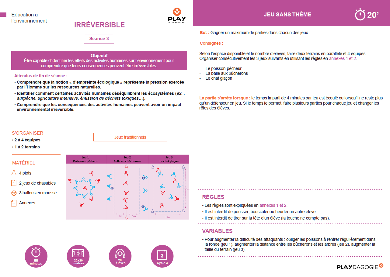 Ce kit comprend 8 séances socio-sportives pour les enfants de 6 à 12 ans (4 séances pour les 6-9 ans et 4 séances pour les 10-12 ans). Ces jeux visent à favoriser le développement des compétences