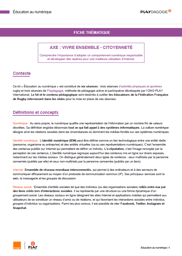 Ce kit, destiné à outiller les éducateurs de la FFR intervenant dans les clubs, permet de travailler sur l'importance d'adopter un comportement numérique responsable et de développer des repères pour