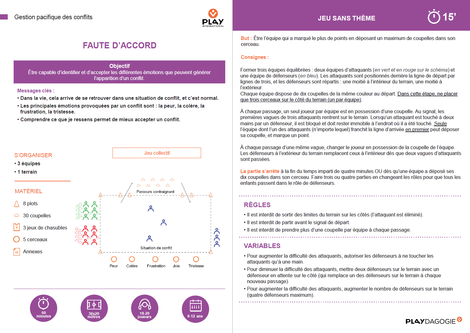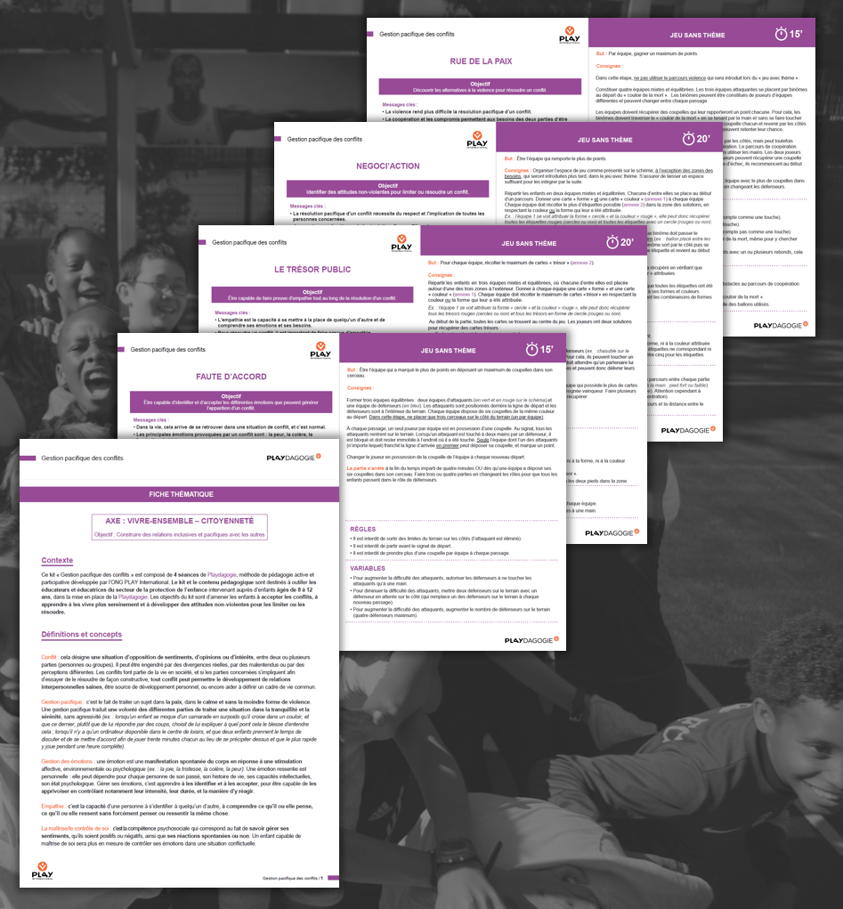 Grâce à différents supports de jeux, ce kit permet d'amener les enfants à accepter les conflits, à apprendre à les vivres plus sereinement et à développer des attitudes non-violentes pour les limiter